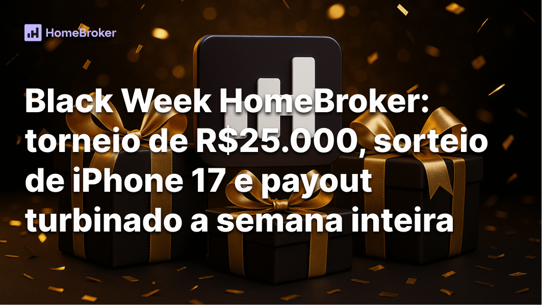A semana mais aguardada do ano pelos traders chegou. Durante a Black Week HomeBroker, você pode competir no Torneio Especial de R$25.000, concorrer a um iPhone 17 Pro MAX e operar com payout turbinado todos os dias, com uma janela de 99% de payout na sexta-feira, das 19h às 21h (horário de Brasília). A seguir, você confere tudo o que precisa para participar com segurança e método.